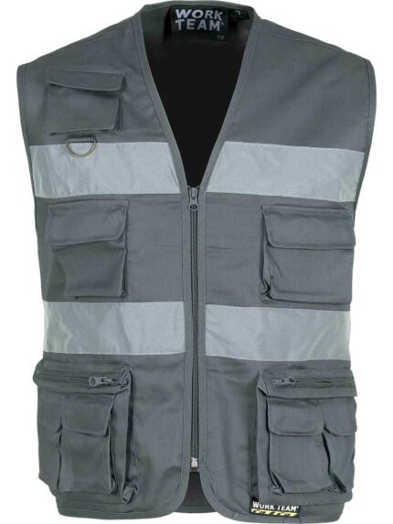 WorkTeam Chaleco Tipo Safari Multibolsillos con 2 Cintas Reflectantes. Hombre