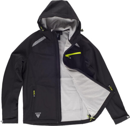 WORKTEAM Chaqueta Softshell , Cortavientos Transpirable y Repelente al Agua, Interior Polar Térmico, Capucha Ajustable y Detalles Reflectantes, Ropa Laboral Resistente. Unisex